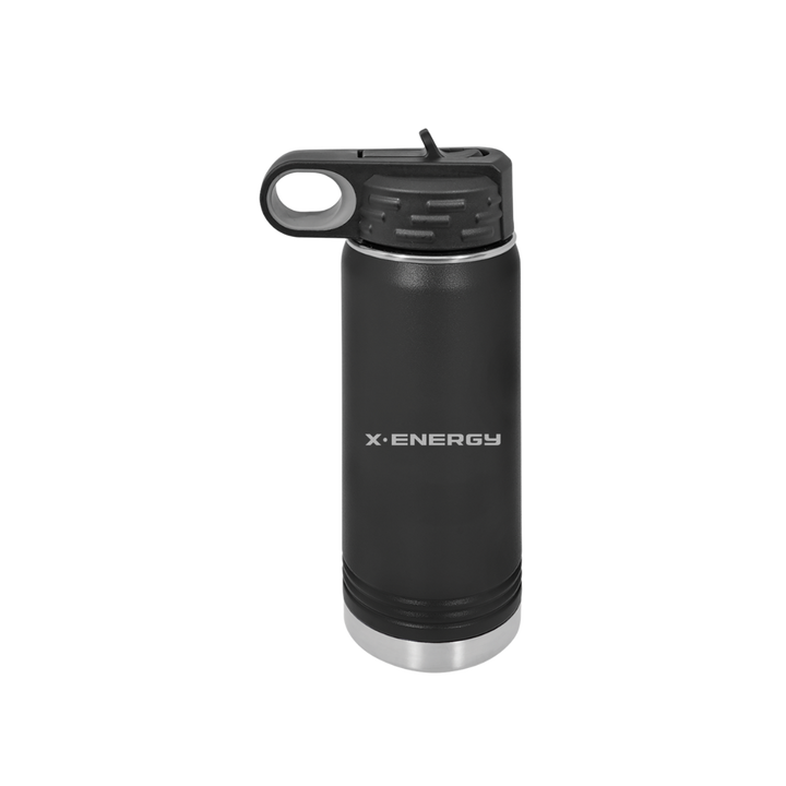 20 oz stainless steel, double-wall insulated water bottle. Screw on lid features...